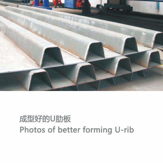 隨著大型鋼結(jié)構(gòu)橋梁工程的日益增多,橋面U肋板單元的生產(chǎn)制備因其批量大、工期緊、成型及焊接質(zhì)量要求高,實現(xiàn)自動化生產(chǎn)的必要性越發(fā)顯現(xiàn)。我司在為山海關(guān)橋梁廠、武船重工、上海振華港機、中泰橋梁等國內(nèi)多家橋梁生產(chǎn)廠家提供了各類橋面板單元生產(chǎn)設(shè)備。橋面板單元結(jié)構(gòu)如下圖: